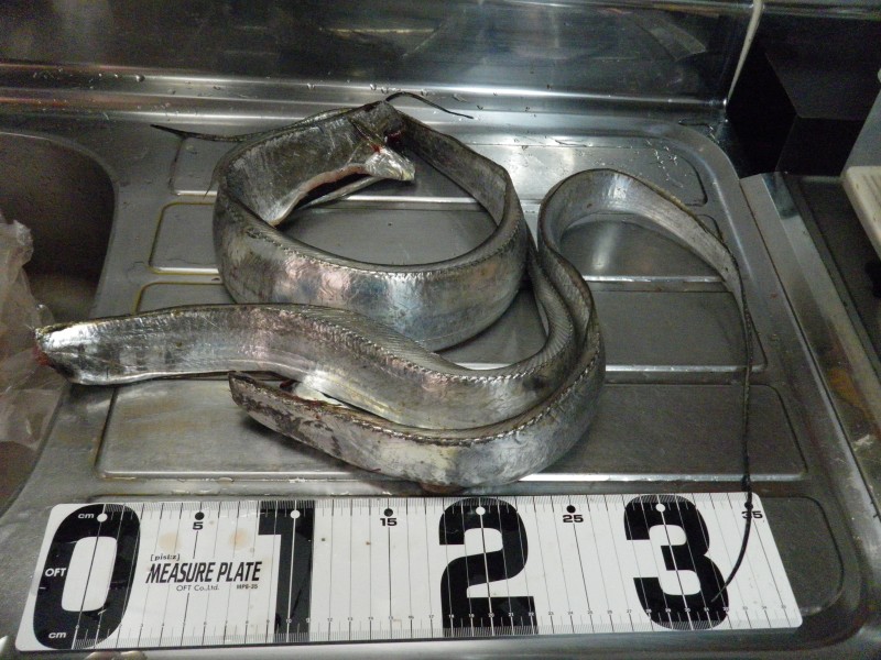 前回の釣行では太刀魚に遊ばれたので、十分飲み込まないとダメと思い、かなり待って 合わせると、鉤が掛かりして釣る事ができた(どこで合わせればいいものか) でも何とか3本釣る事ができた。
