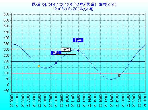 | 2008/06/20(金) | 大潮 | 0:15 11:27 | 6:10 17:55 | ||||||