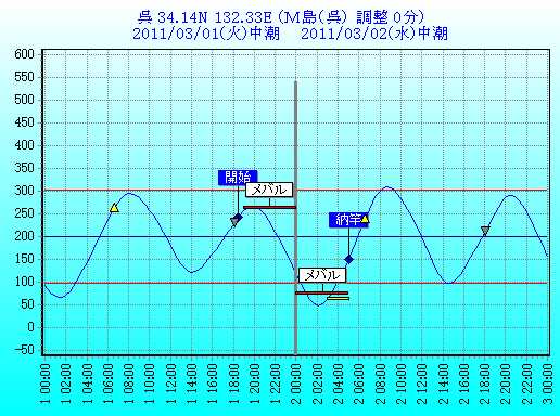 | 2011/03/02(水) | 中潮 | 8:41 20:33 | 2:09 14:38 | ||||||