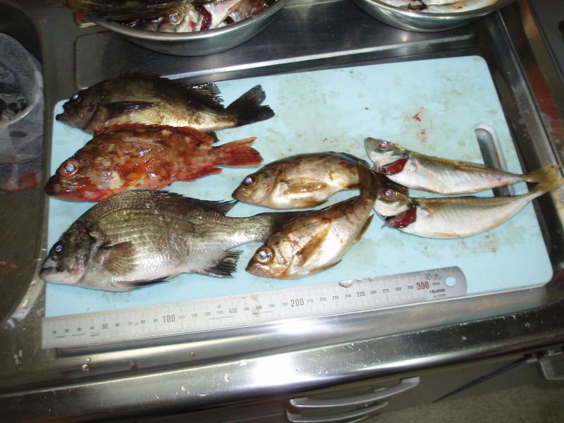 | アジ2匹 メバル3匹 ホゴ1匹 チヌ1匹 |