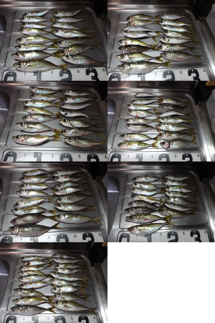 サイズUPしたくていろんな棚を釣ってみるのですが、なかなか思うように釣れません、場 所の問題、時期の問題もありますが、私自身のさらなるバージョンUPが必要と思います、そ のためには、巻かない釣りが答えなのかもと思います、しかし相手は自然ですから毎回条件は 替わります、そうなると経験なのか、情報なのかと思います、どちらも不足しているのは間違 いないですが、最近ではまぐれもないのは辛いです、まぐれでも少しはデカイアジが釣りたい です。