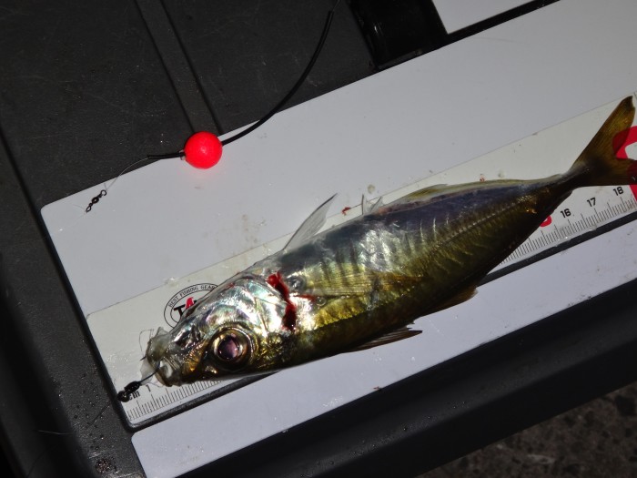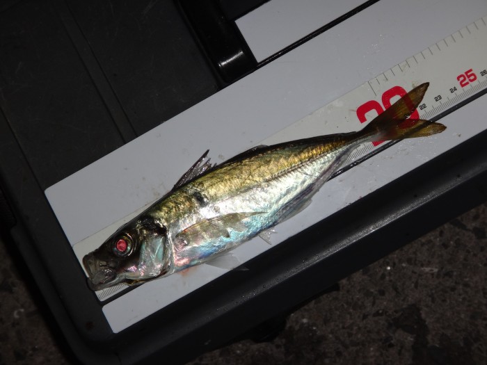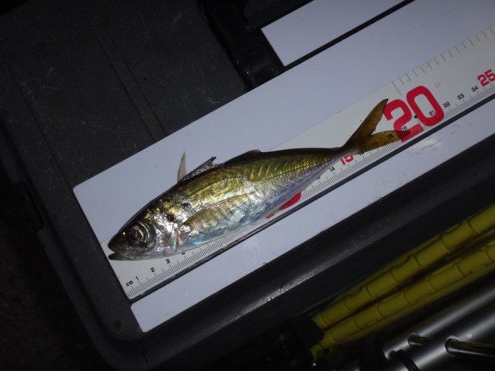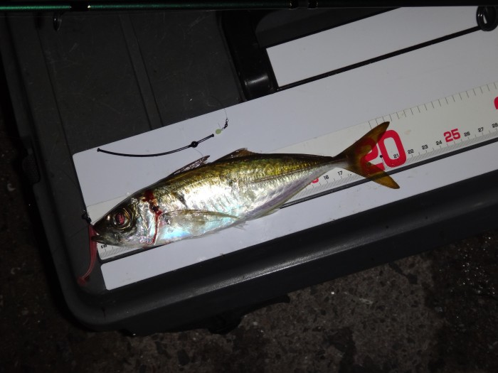 今回も手製ジグヘッドで全て釣りました、それで今回試したかったのは、カブラです、数個 作って試しました、下の画像がそのカブラで釣れたアジのアップです