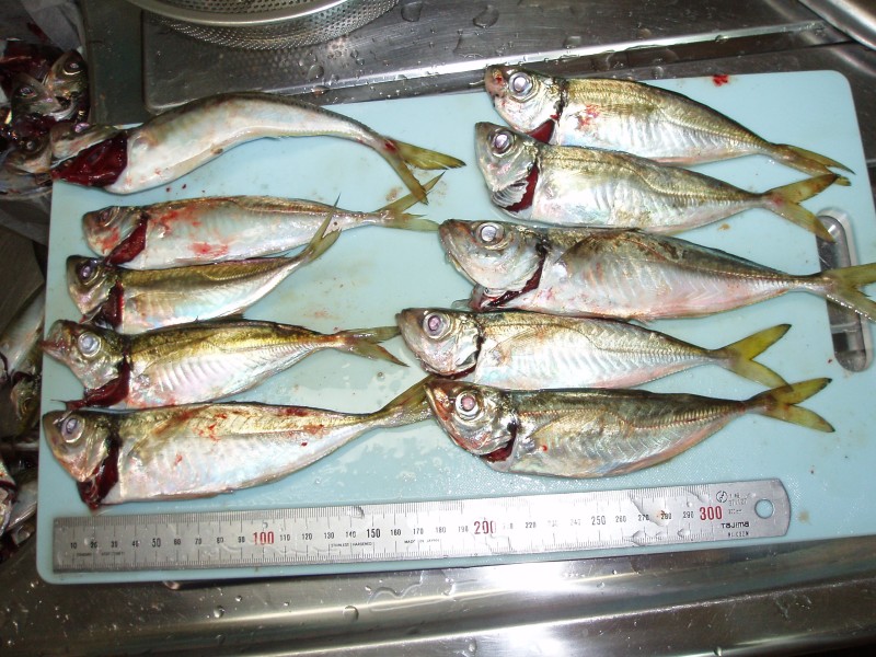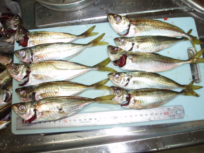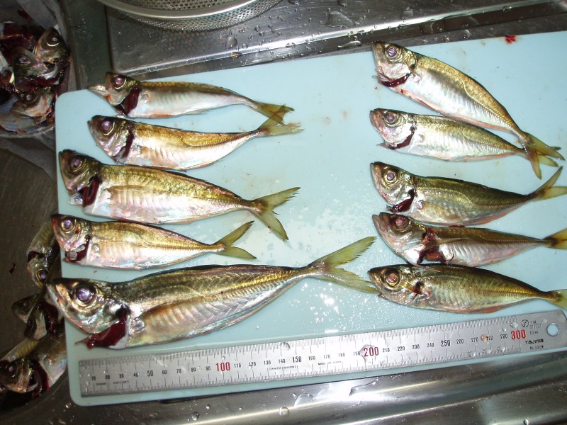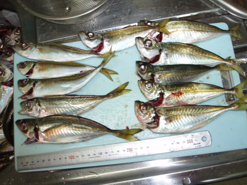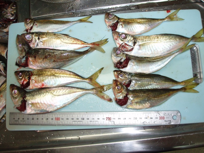 | アジ | 15.0 Cm 〜 24.0 Cm | 101 匹 | 9日 18:00 〜 23:59 | 185 Cm | サビキ | |