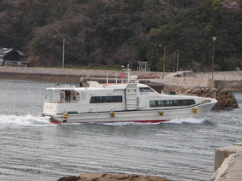 | 第八同栄丸 乗り降りの楽な快速船 キャリーを転がしたまま、中央のフラップより乗船できる。 |