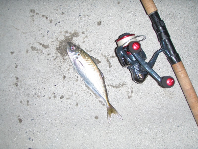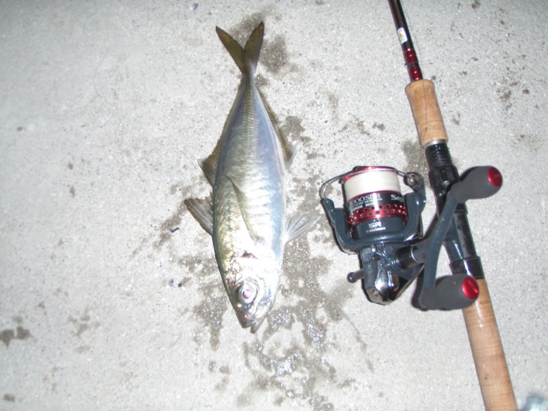 この島には何度通ったか、調べると初めての釣行は、2008/05/17だった、そして今回が 14回目だった、よく通ったもんだと思う、一年でだからね。 多少、見知った人もいて、話ができる人もいる、みんな感じが良くて、いろんな事を、教 えてくれた。 今回は釣り場に着いたら、そこに夫婦でアジ釣りをしていた、お客が来るので、アジを 振る舞う様だ、さぞ美味しいだろうと想像できる、その人たちは暗くなる前に帰って行っ た、アジもそこそこ釣っていた、さて一人になって、それまでに、用意してあった、サビ キで釣り始める、私は沖を釣るのが好きだ、調子良く釣れる、型も20cm越えが釣れてく る、今日はこれなら大漁だと思った、これから満ち潮だしね、でも甘かった、釣れるよ確 かに、でも小さい、何匹釣っても小さいのばかりで、だんだん嫌になって、中側でも、釣 ってみるが結果同じで、これには困った、しょうがないルアーをやろうと、餌に冷凍白魚 を付けて、海面を見ていたらピチャピチャ音がしてるので、その当たりを、ゆっくり引 いてたら、いいアジが釣れてきた、これは楽しい。
