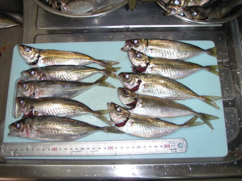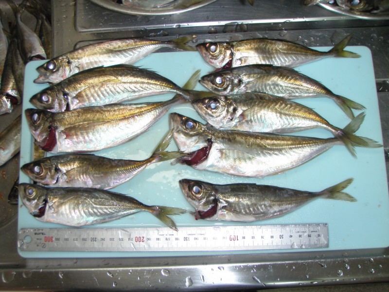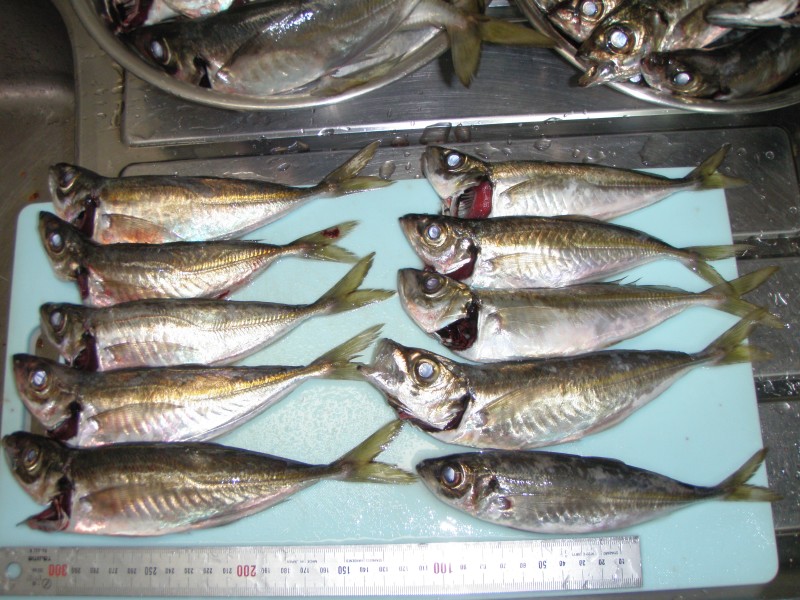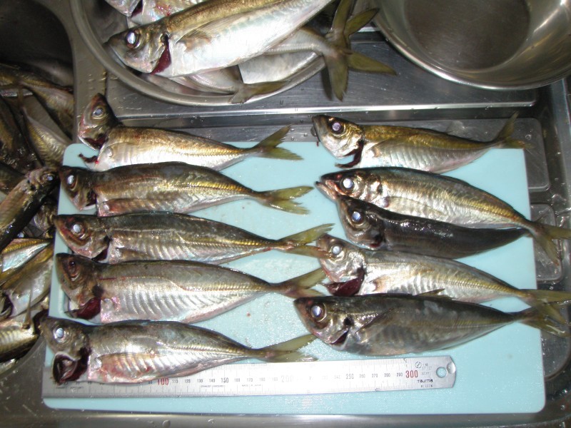 今日のアジはつれないな等と思いながら、いろいろやって見ても結果は同じようなので 朝まずめに掛けてみることにして、アミエビを残しておいた、4時頃にその兆候は訪れた それから5時30分まで型も許せる範囲で、ほとんど入れ食いで釣れてくる、このときに釣 れたので、今回の釣果はまあまあになった。
