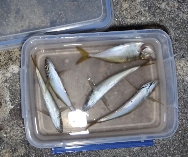 今回は刺身サイズを求めての釣行だったが、どれも小アジだけ、それならこいつを刺身にするかと頑張ってみた、今回は10匹のアジと15cmの鯛は全て刺身にした、めちゃ美味かった。