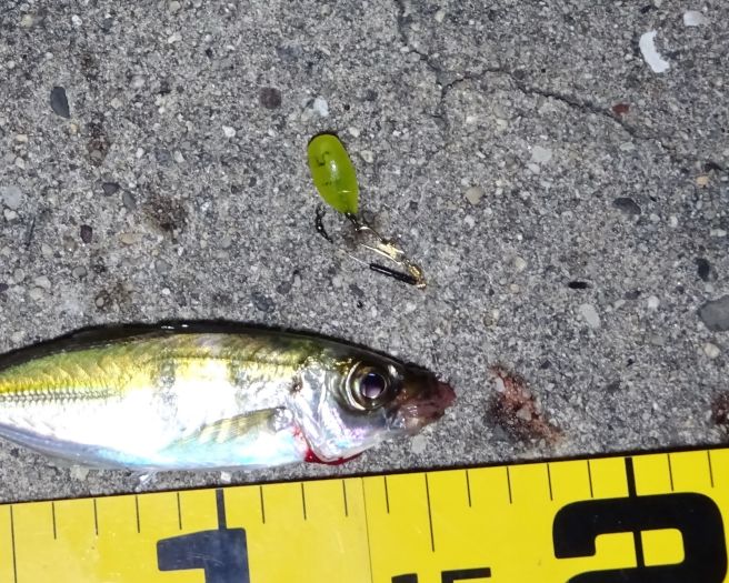 最初はアタリが無かった、これはたぶんアジが昼から夜に変わる1時間くらい釣れない時間にハマったからと思う。