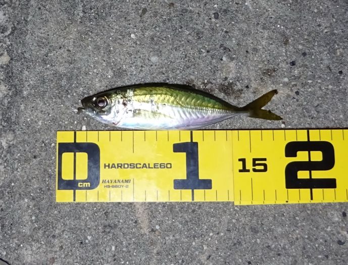 これが大きいほうのアジで18cm、小さいのは測ってないけど15cm、それでもアジはキープした、だけどメバルの小さいのはリリースする、これは差別じゃないよ。