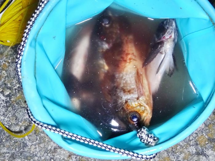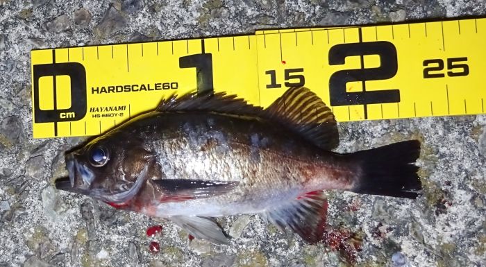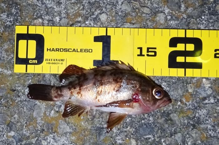 23cmの良い引きをしたメバルも、釣れたのはこのときで、前半よりもサイズが上がった、それだけに大きいライズを釣ることができなかったのが悔しい。