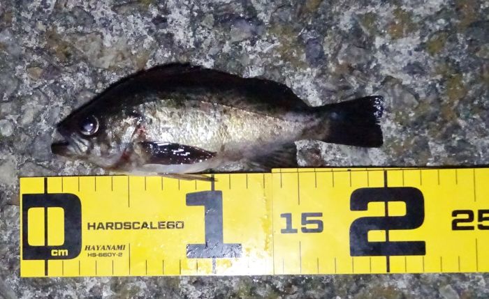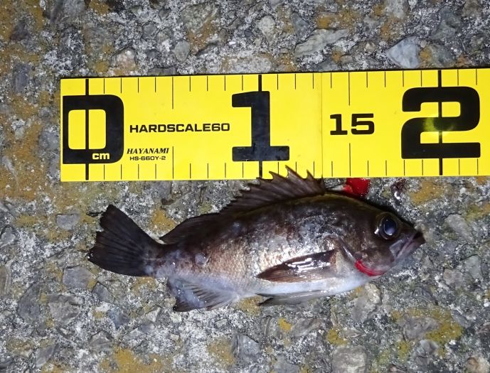 もしかして、小メバルはこの先もいないのではないかと、思うくらいに釣れなかった、試すつもりが計画倒れだった、それでも表層に、メバルのライズがあったので、16cmくらいのメバルを釣った。