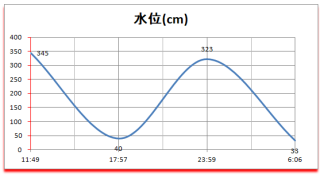 新月 ============== 時 | cm | 日 | 潮 ============== 11:49|345 |17:58入| 中 ---------------------------- 17:57| 40 |*******|**** ---------------------------- 23:59|323 |*******|**** ---------------------------- 06:06| 33 |06:44出| 中 ----------------------------