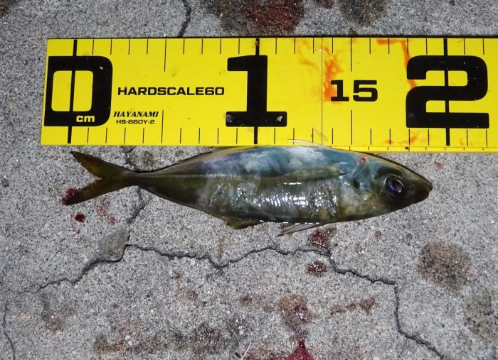 それで2時間後とみた、つまり26時まで(2時)までは釣ろうと決めた、その間にアジが一匹と小メバルが釣れた、このアジの写真を撮ろうと思ったが、バケツの中に自動リリースしてたので諦めた。