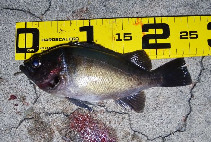 暗くなって釣れ出すのは20時頃と思った。最初に釣れたのはメバルだった。