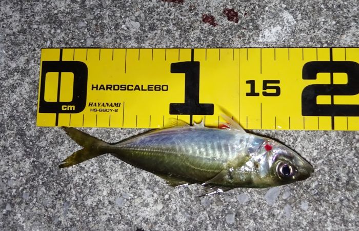 最初に釣れたアジは、暗くなって直ぐの釣果で嬉しかった、「おお!アジが釣れた」って感じ、それくらいアジを釣りたかった。