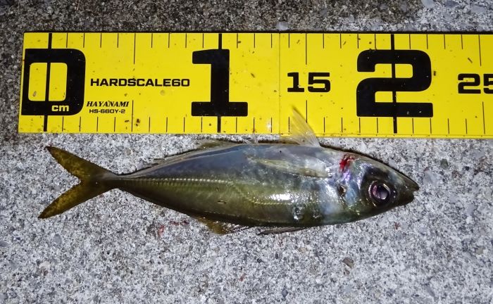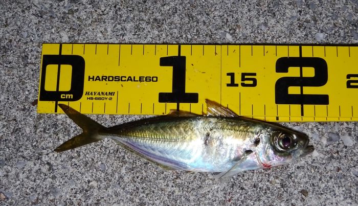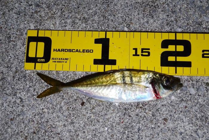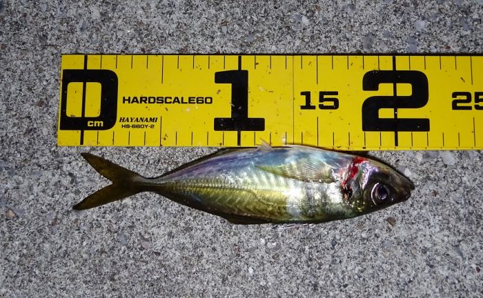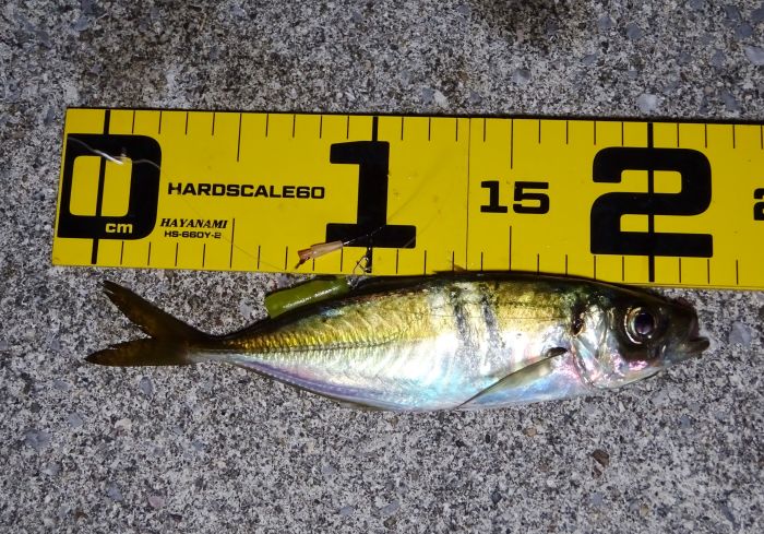 前回は小アジしか居ないのかと思ったが、今回は20cm越えが8匹釣れたので、小アジだけの溜まり場所ではないようだ。