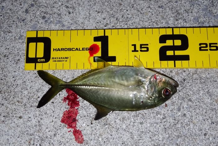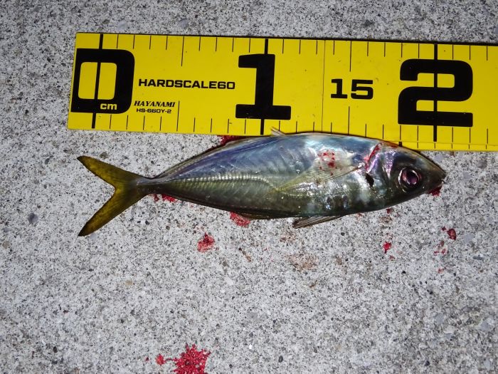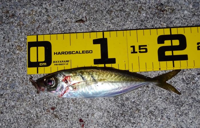 12cmくらいのアジを私は釣りたくない、せめて15cmは欲しい、なぜなら下すのが大変だし、なんでこんな小さいアジをキープしたのか、自虐を感じるから。