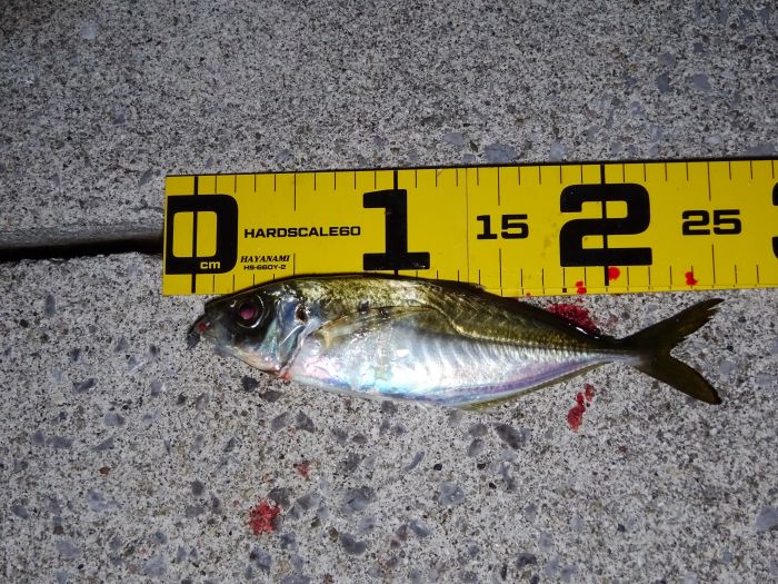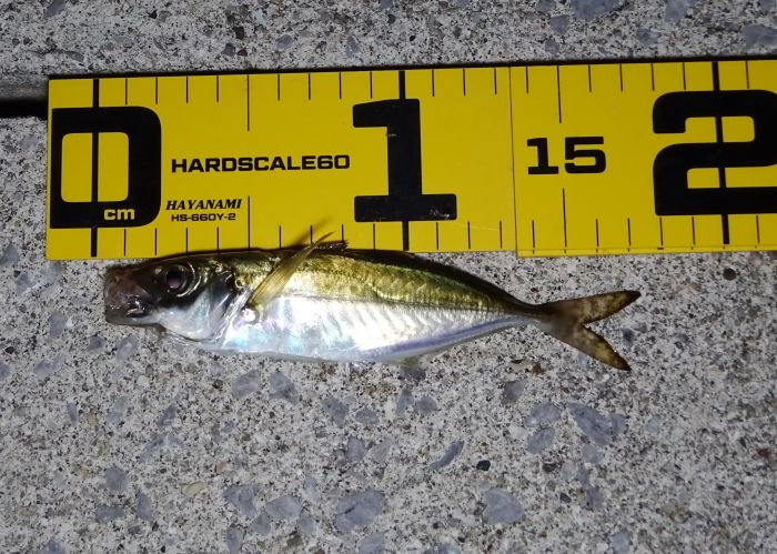 これだけ釣れるなら、ワームで十分じゃないとワームで釣ったアジ、記憶ではこの後もう1匹ワームで釣れて、その後釣れなくなった、