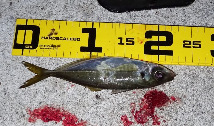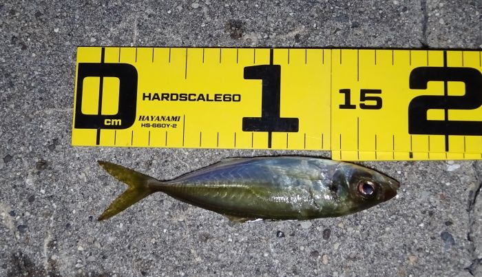 確か2投目での釣果「アジは居るじゃん」と一安心、この一安心は、この場所でもアジが釣れたの一安心でもある。