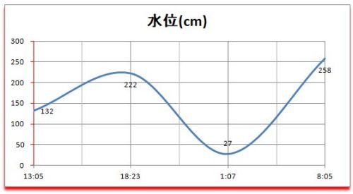 新月 ● =================== 時 | cm | 日 | 潮 | 月 =================== 13:05|132 |17:18入| 中 | 03:53出 -------------------------------------- 18:23|222 |*******|****| ******* -------------------------------------- 01:07| 27 |*******|****| ******* -------------------------------------- 08:05|258 |07:17出| 中 | 14:45入 --------------------------------------