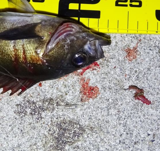 最初のキープがこのメバル、なんか産卵後で痩せてる感じで、パワーも感じられない。