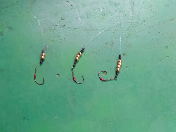 エサ釣りの鈎を使える事、管付き鈎を使用したのはダウンショットの結び方にして、針先が上を向くようにしたかったから。