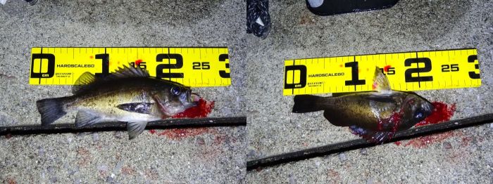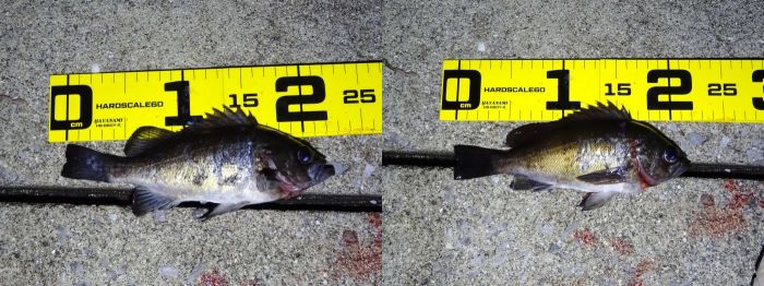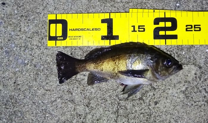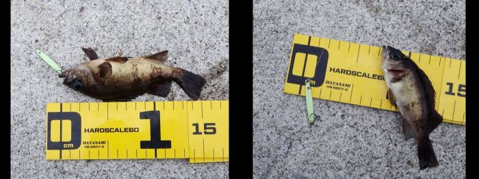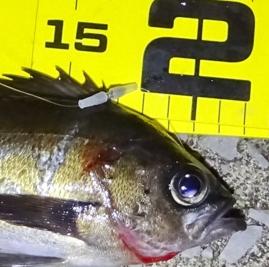 表層で釣れたのが多かった、中層ではどうかと、20カウント沈めて引くとメバルは釣れたが小さかった。