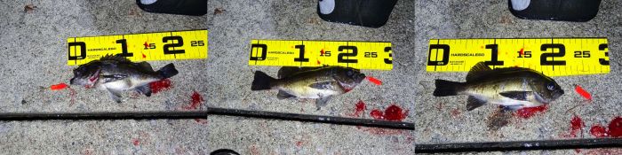 まさか釣れないだろうと思っていたのだけど、3匹釣れた、小さいのばかりだけど、明るい時間では釣れた。