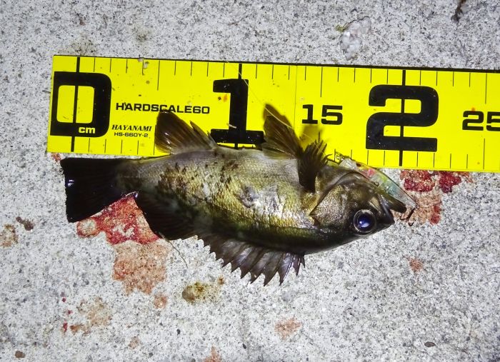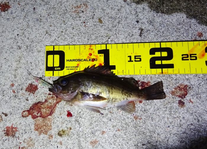 初めて釣ったぞ、それは、明るい時間にそれなりのサイズのメバルの事。