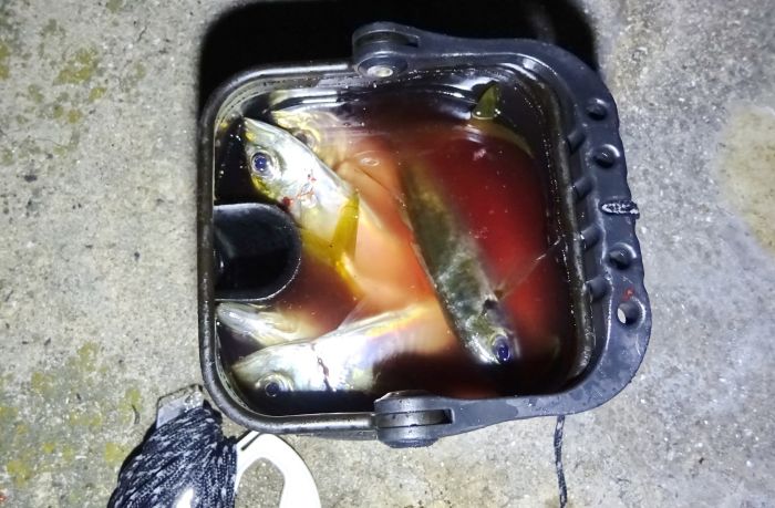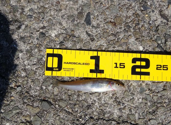 流れが止まったら釣れなくなった、しかし十分堪能した、アジが釣れるのは流れを挟んで向こうなので、流れを通過させるときに鈎外れしないか心配。