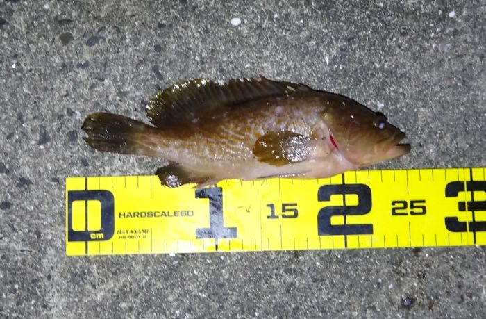 25pとは言えアコウはアコウ。なんだこれはとよく見ると{ベラか?いや違うアコウだ}と、アジ並みに嬉しかった、これは完全なまぐれの釣りだけどアコウなので写真は三枚、アジと同じ枚数。