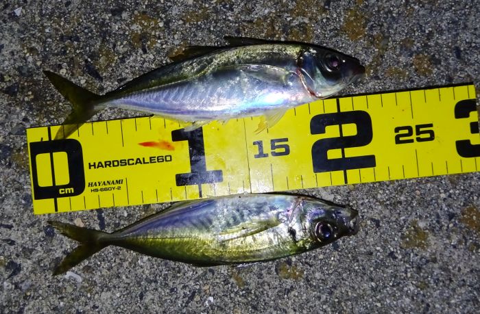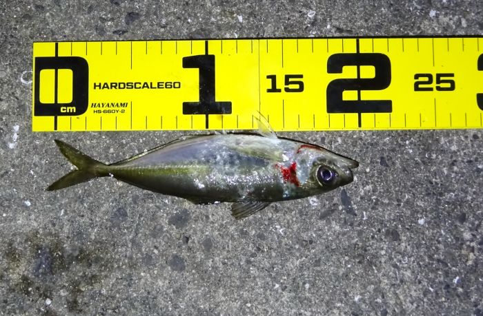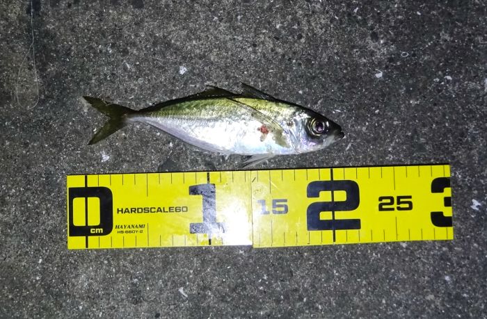 当然メバルを意識して表層や少し下などを責める、それでヒット、なんだと見たらこれがアジだった。