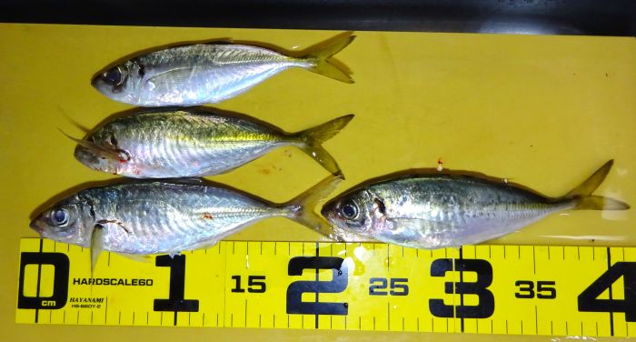 これはアジの数が少ないからだろう、とにかく時間をかけて三匹追加で四匹キープできた。