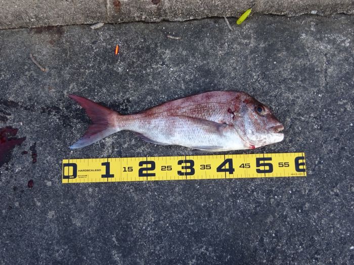 だいぶ前に同じ場所で60pの鯛を釣った事がある、今回は55cm。