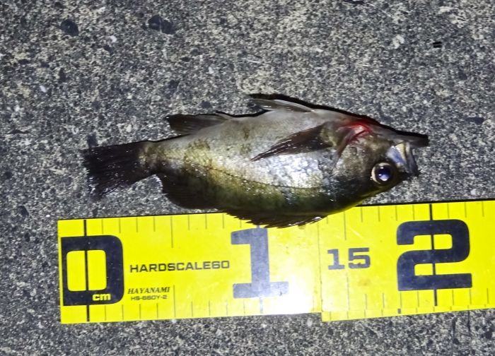 暗くなって、全く釣れない、釣れたとしても小メバルで、ときたま18pくらいのメバルも釣れる、今思えばそれをキープしておけば良かった。