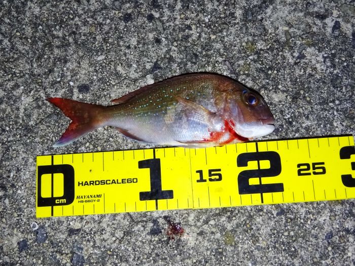 鯛を釣った18:49はまだ明るかった、日の入りは18:50でも本当に暗くなるのは19:20、つまり夕マズメの時間、こんな明るい時間にキープできるなんて、夜釣り専門としては違和感がある。