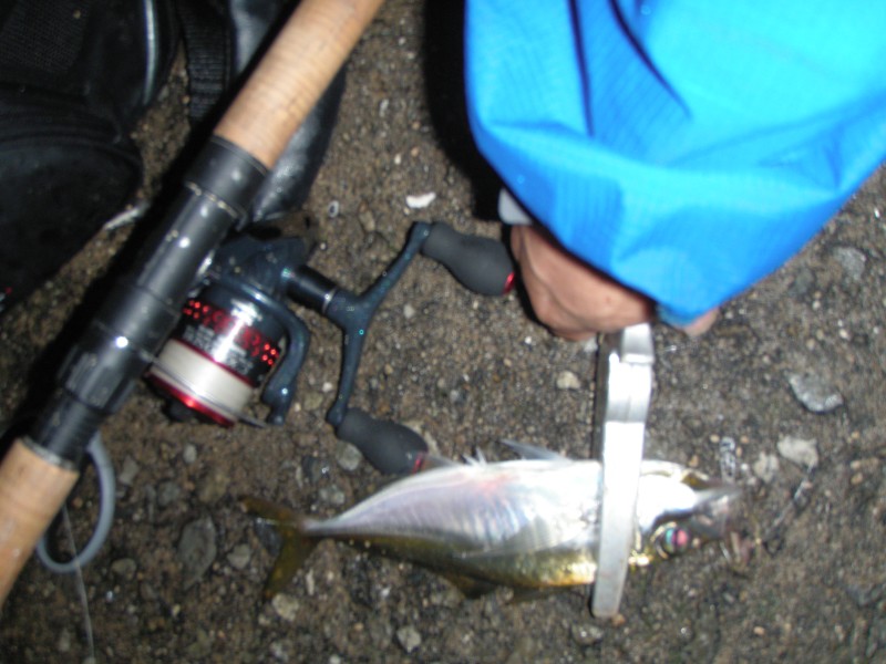梅雨の天気予報は当てにする方が悪いのかもしれない、午後からは、曇りだと疑わずに 出かけたが一向に雨は上がらない、当初予定はI島だったけど、車がないと、この雨では キツイのでM島に変更した。 22時時頃には雨が上がって、風も無く釣りには最高だった。
