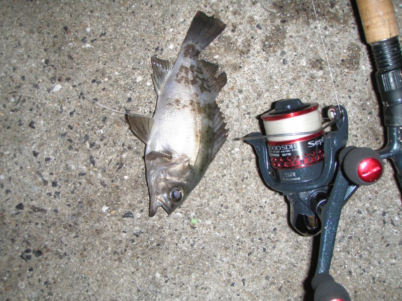 これでアジもメバルも、グレも釣れた、ルアーのジグヘットでは、ゆっくり底を探るの は難しいけれどダウンショットリグではゆっくりどころかステイもできるし、遠くも探れ る、今はお気に入り(いつまで持つかは不明だけど) でも上に浮いているアジやメバルはやはりジグヘッドでなくてはね、そんなん訳でロッ ドを2本持って、場所に合わせて釣りをした。