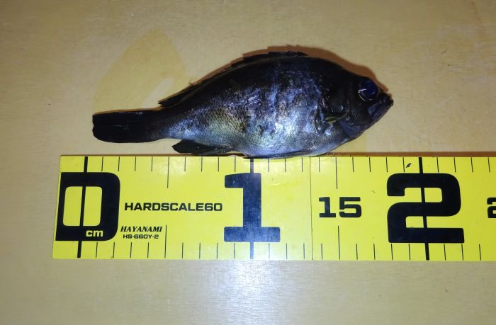 スケールもカメラももってなかったので、帰って測ると18cmの抱卵メバルだった、小メバルを釣ったのでメバルは居るんだと分かって期待した。