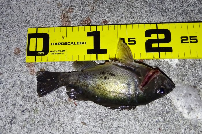 ちゃんとメバルも釣れました、上の小物は明るい時間に波止際で、メバルは暗くなってから。