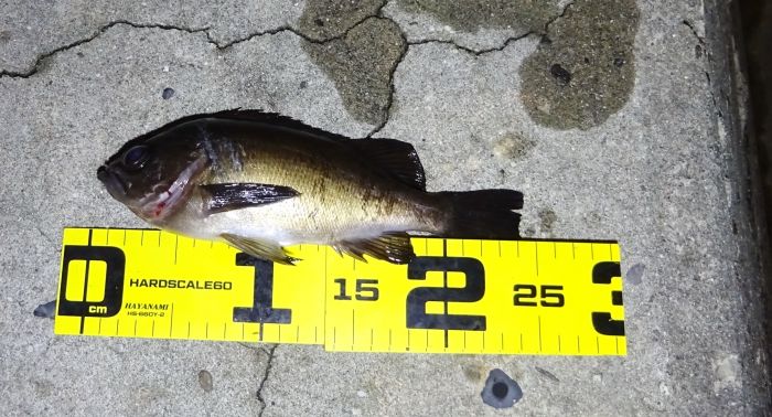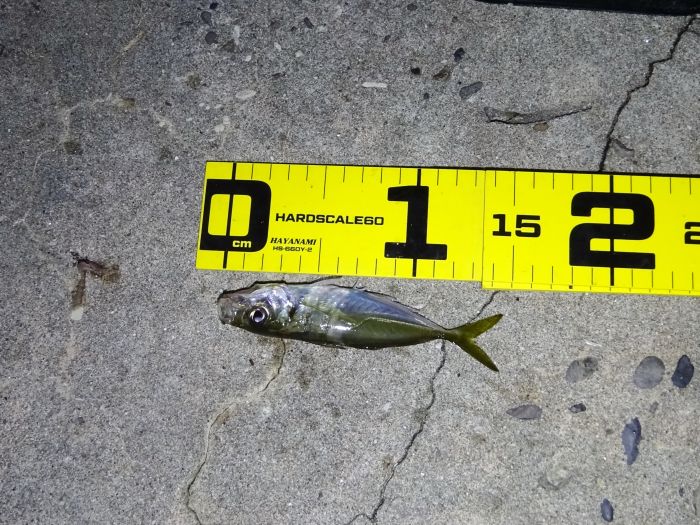 15cm弱のアジ、これを釣るには今回の道具(タックル)は失敗だった。