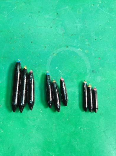 今回作ったフロートは仕事が一日空いたので一日で15個作った、その内訳は6gと3gと1.5gが各5個で合わせて15個、なかなか一日では大変な作業で、発泡材のサイズ(長さと径)を適当に決めて、黒く塗る前に水に入れて状態を確認する。