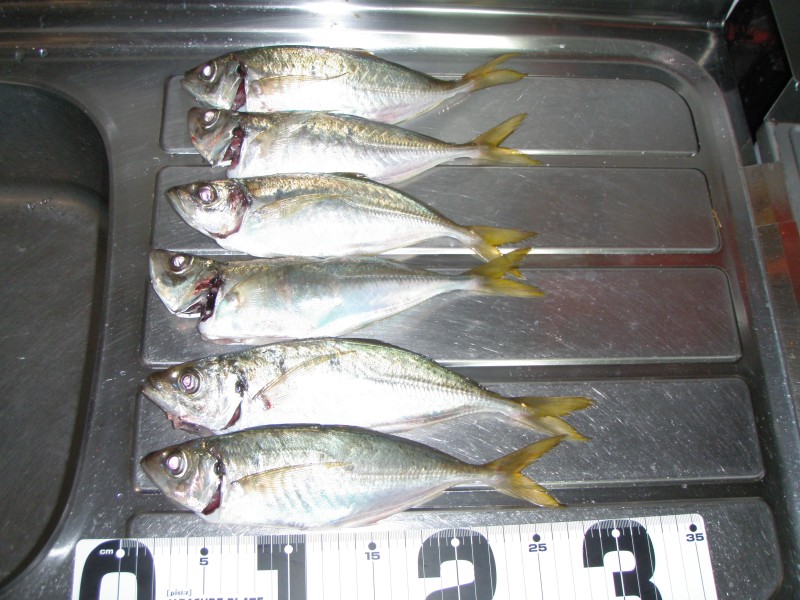 | アジ | 25.0 Cm 〜 29.0 Cm | 13 匹 | 23日 20:30 〜 23:00 | 251 Cm | 砂虫 | |