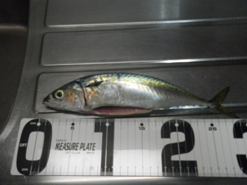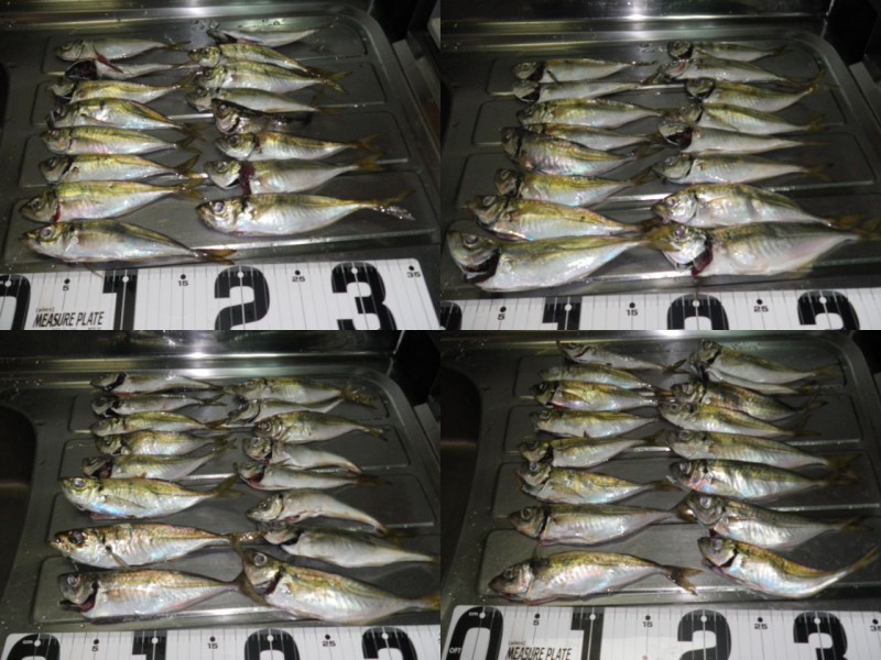 | アジ | 16.0 Cm 〜 22.0 Cm | 73 匹 | 28日 3:00 〜 5:00 | 124 Cm | サビキ |