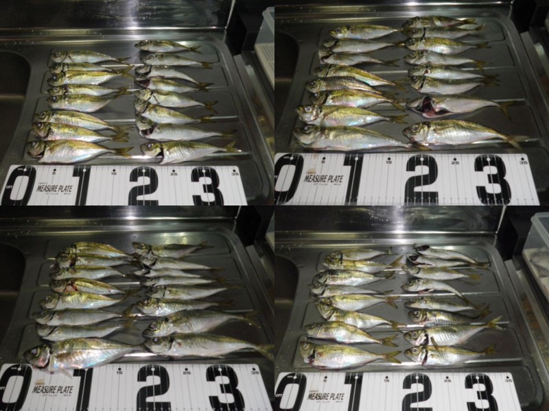 | アジ | 16.0 Cm 〜 22.0 Cm | 60 匹 | 27日 20:00 〜 23:59 | 308 Cm | サビキ | |