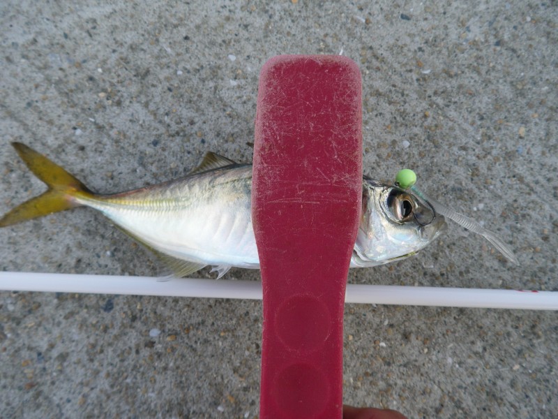 | 17:37 強風のため、3gのJH 明るい内に釣れたアジ |