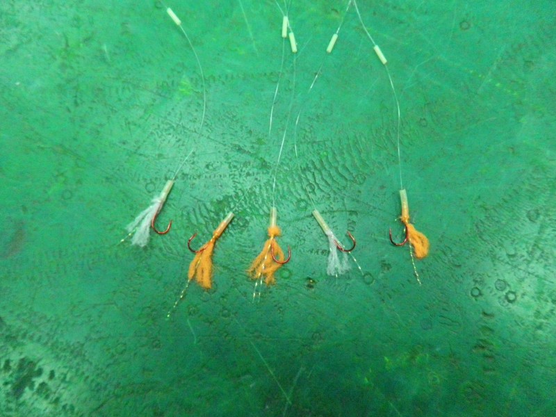 | 手作りサビキ(ウイリー) 適当です(笑わないで!) これでサバも釣れました。 |