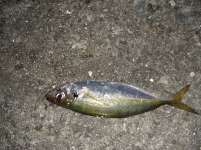| 20:36 ピンぼけだね いました25cmのアジ でもこの後は釣れなかった。 刺身で美味しかった。 |